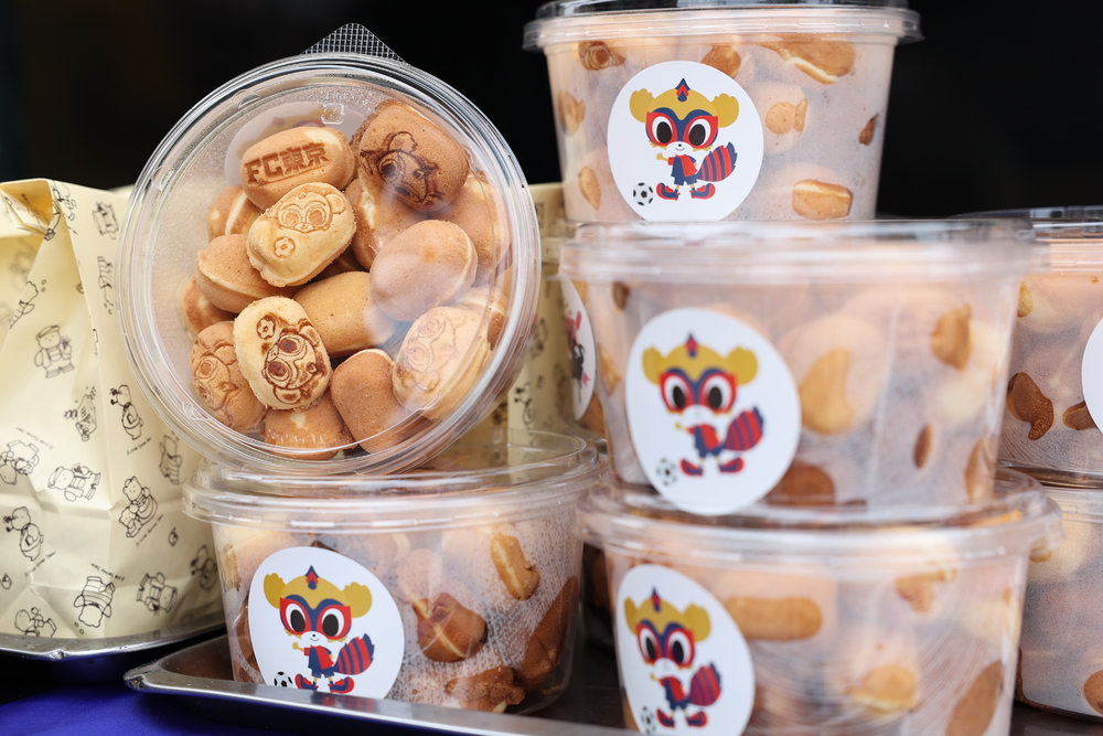 俱乐部原创甜点的迷你蛋糕。带有球队吉祥物TOKYO DOROMPA的烙印。