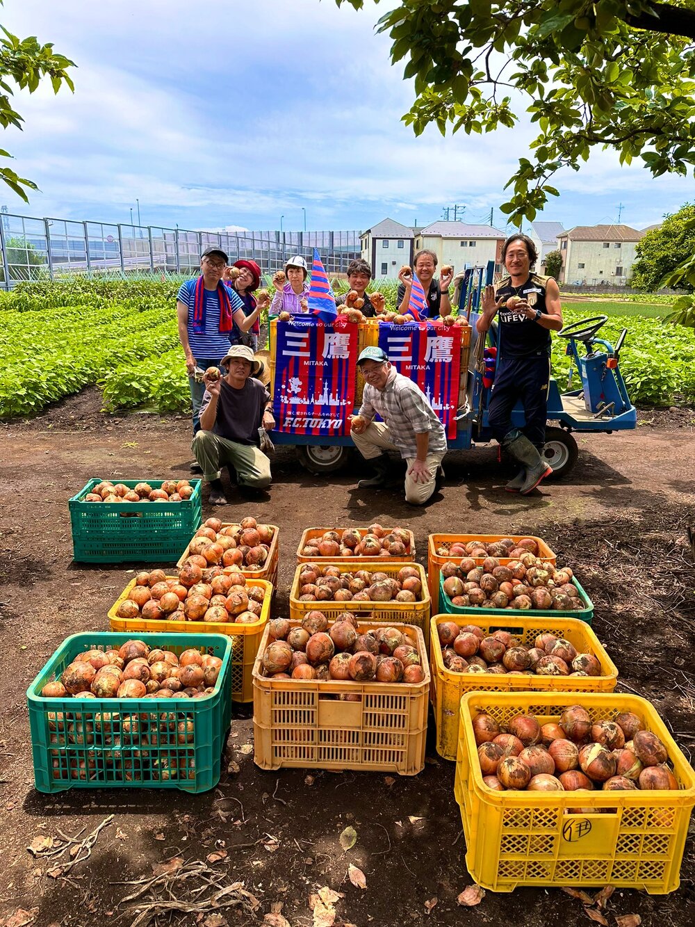 这一天在伊藤园的协助下,确认了洋葱的收获和为三鹰日准备的毛豆的生长情况。