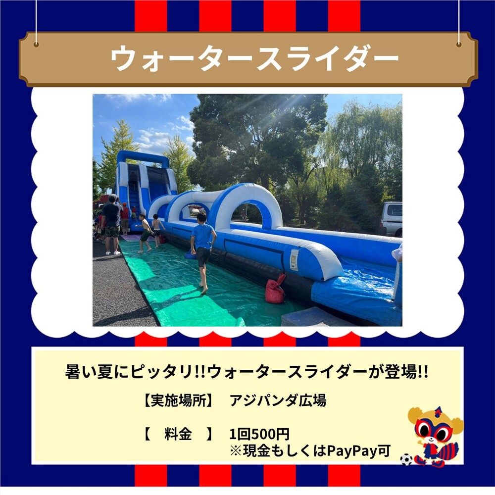 这一天登场了非常适合炎热夏天的“水滑梯”!还有可以制作原创荧光棒的工作坊!比赛前在AO-AKA PARK创造夏日回忆吧!