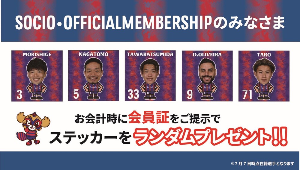 2024赛季,在主场比赛中,胜利比赛后,在主场各商品售卖点购买FC东京商品满2,000日元(含税)以上,即赠送1枚胜利硬币!!</span>