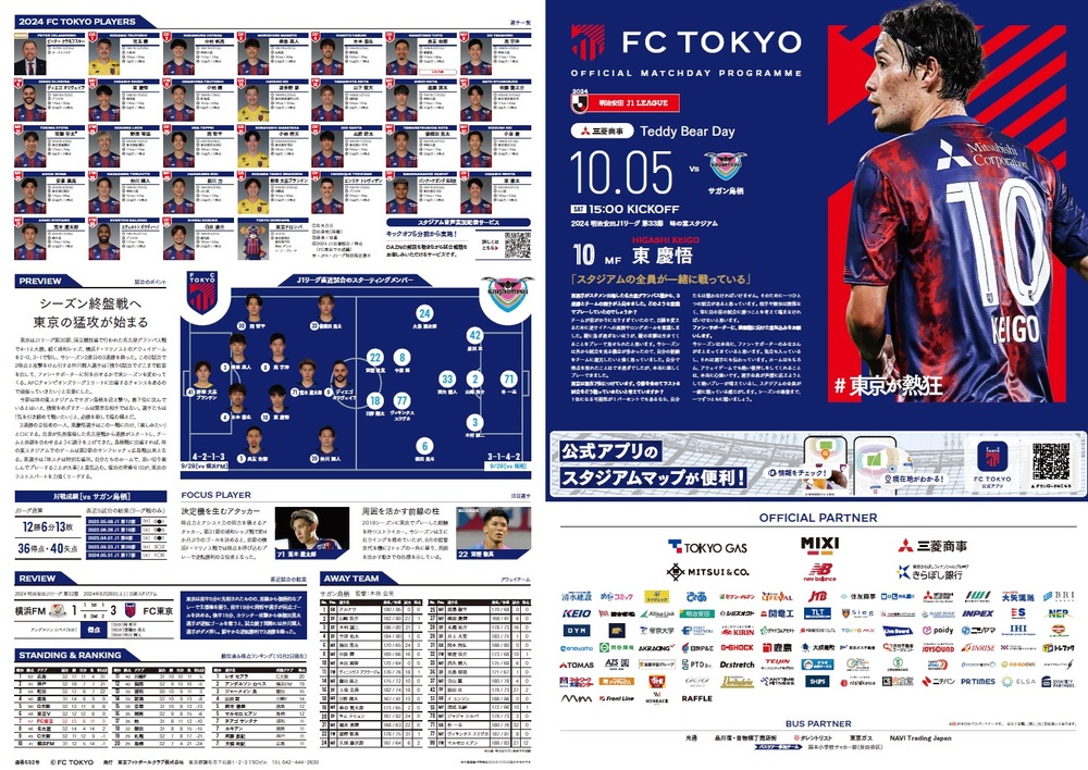 10/5(周六)鸟栖战 官方比赛日程程序说明 2024/10/4 比赛信息 10月5日(周六) 2024明治安田J1联赛 第33轮 vs Sagan鸟栖(15:00开球/味之素体育馆)的官方比赛日程程序,现通知如下。 □官方比赛日程2024</span></strong>【采访】东庆悟球员・页数:B4尺寸(对折)4页※可从页面底部的PDF查看。 ◇比赛信息请点击这里</strong> ▽PDF查看请点击这里 20241005_鸟栖战比赛日程程序.pdf