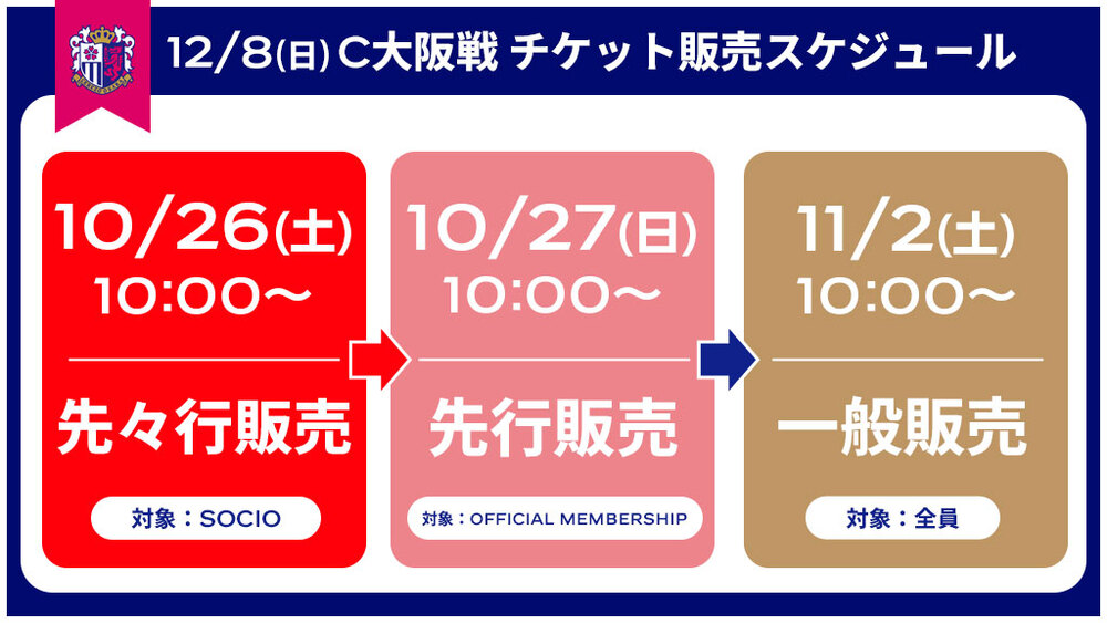 12/8(周日)对阵C大阪比赛 门票销售相关