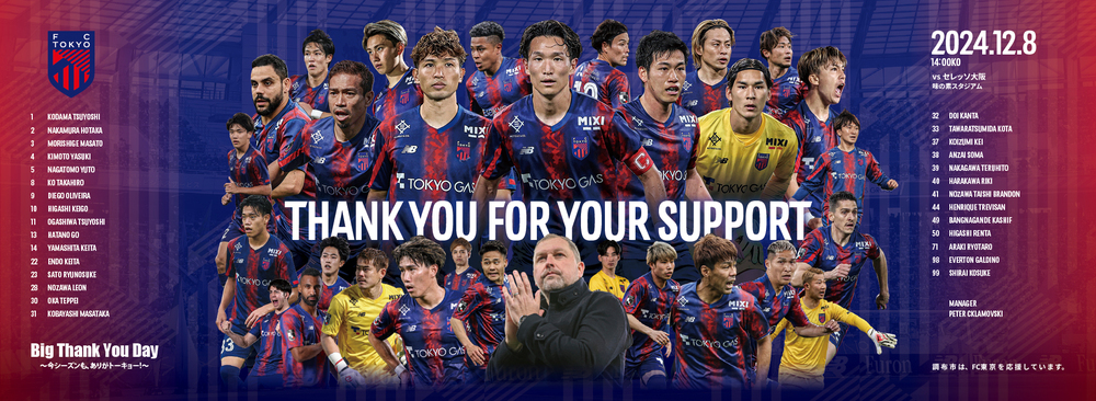 【12/8追加】12/8(周日)对阵C大阪战『Big Thank You Day~本赛季也感谢东京!~』举办通知