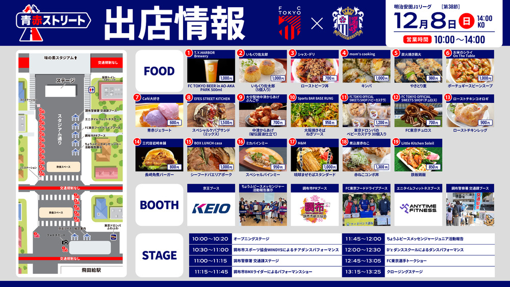 2024年12月8日(周日) 明治安田J1联赛 第38轮 vs Cerezo大阪 (14:00开球/味之素体育馆)将举办的第4届AO-AKA STREET各类活动信息通知。