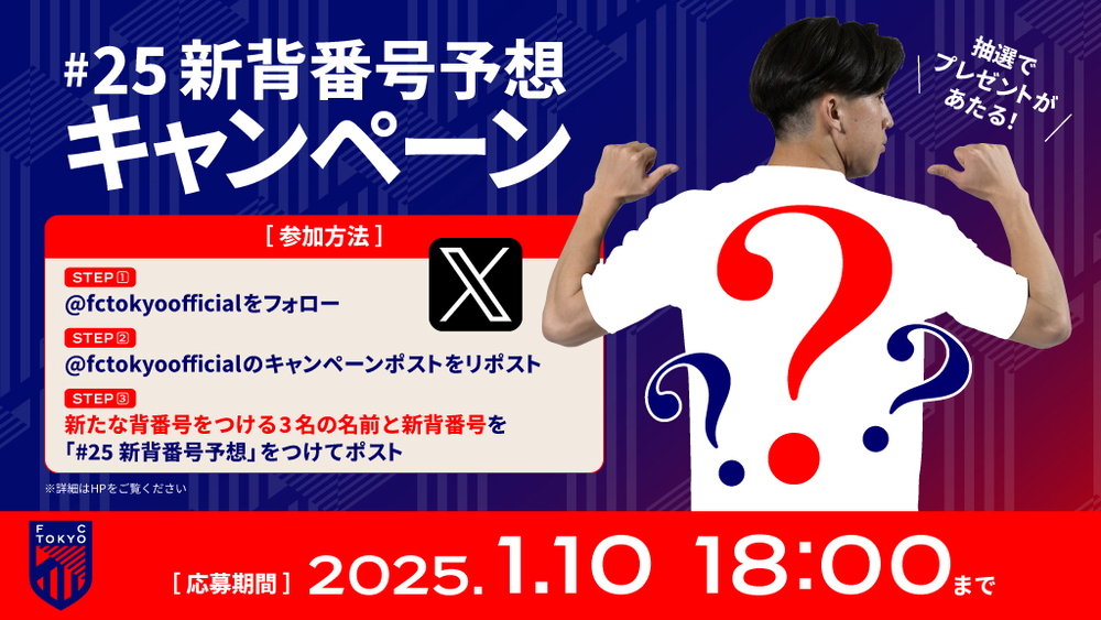 将在2025年1月10日(周五)举办的“2025 FCTOKYO新体制发布LIVE”中,公布2025赛季球员的新背号。