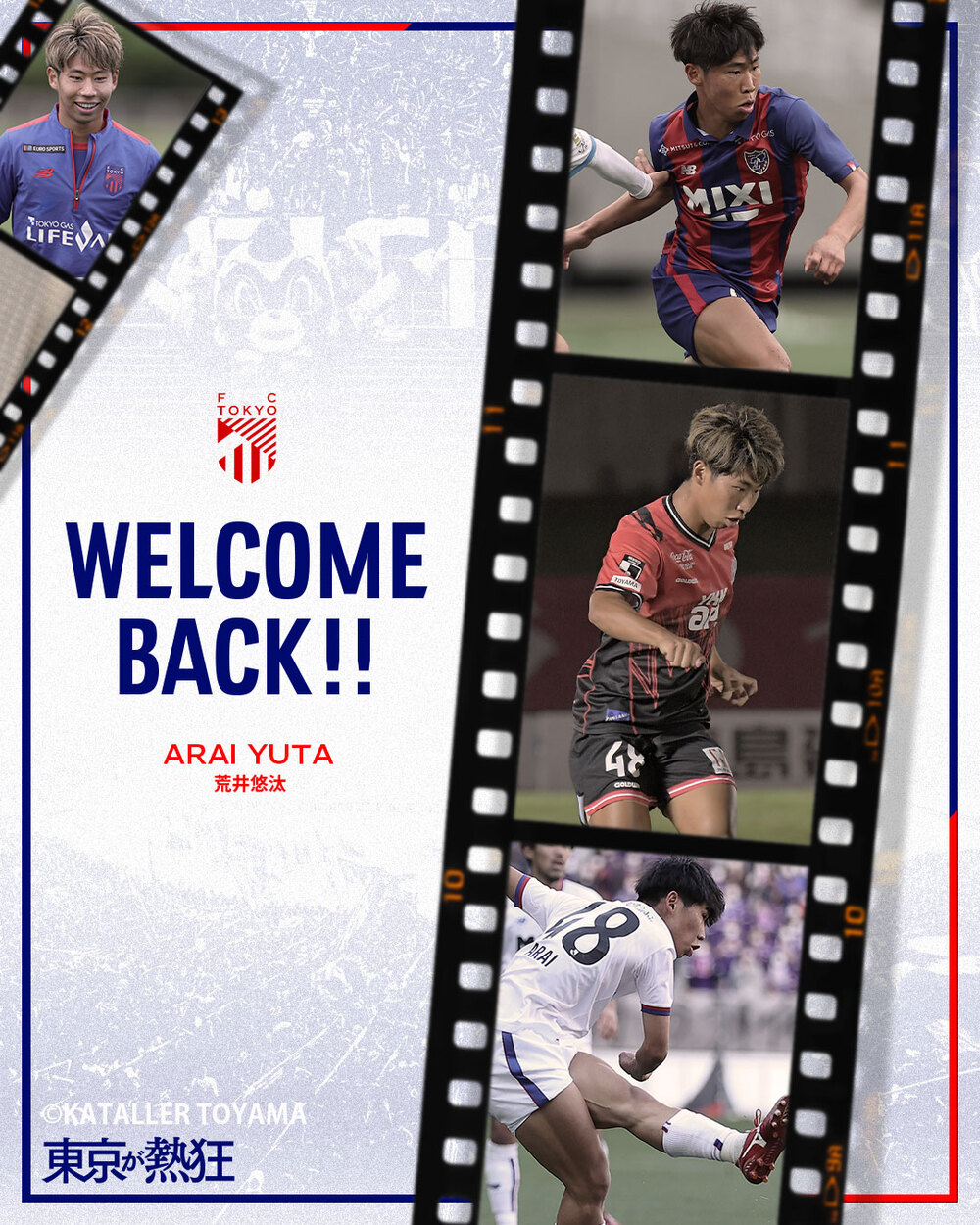 曾以育成型期限转会加盟Kataller富山的荒井悠汰球员,已决定回归FC东京,特此通知。