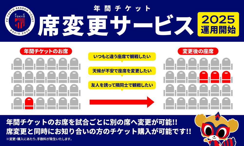 关于2025赛季SOCIO(年票)申请开始时通知的新服务“座位变更服务”的运营,现提供详细说明。