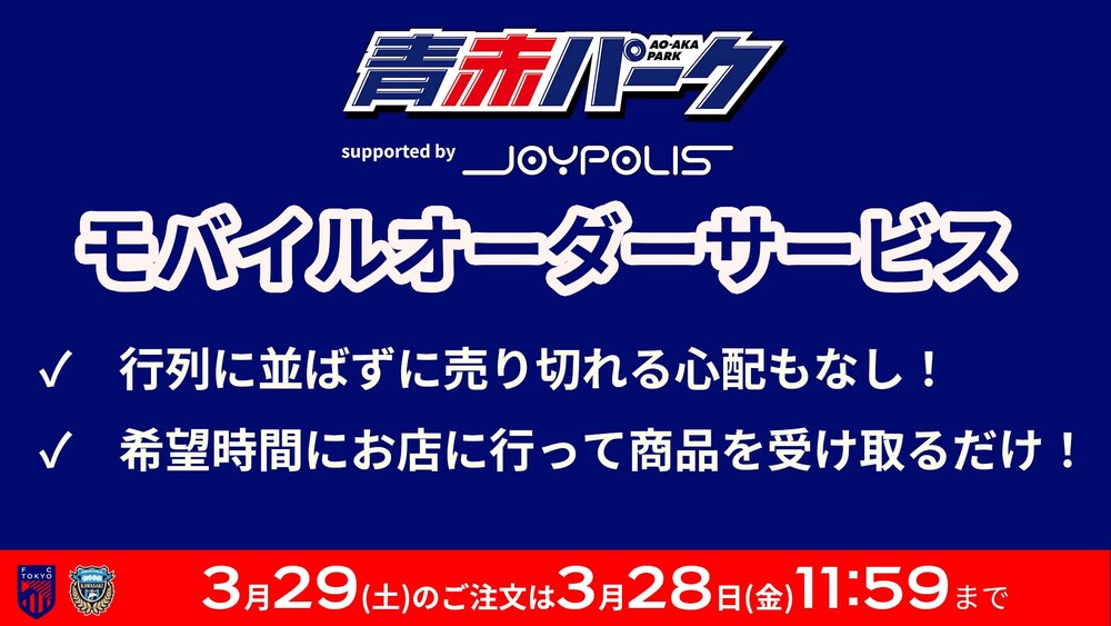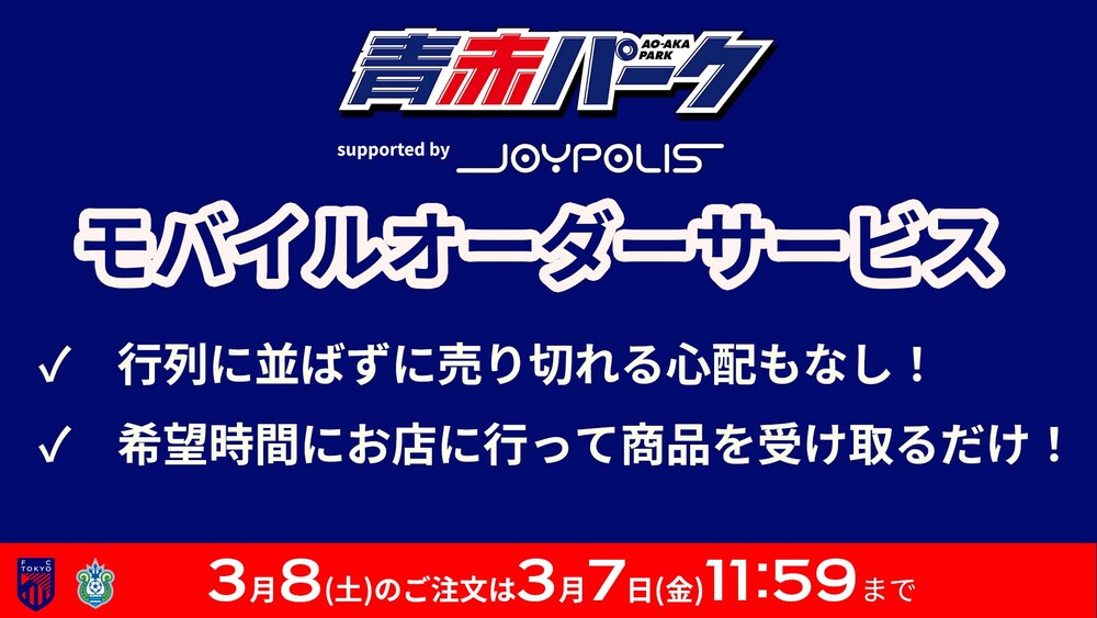 • 3月主场比赛中AO-AKA PARK supported by JOYPOLIS移动点餐服务的通知