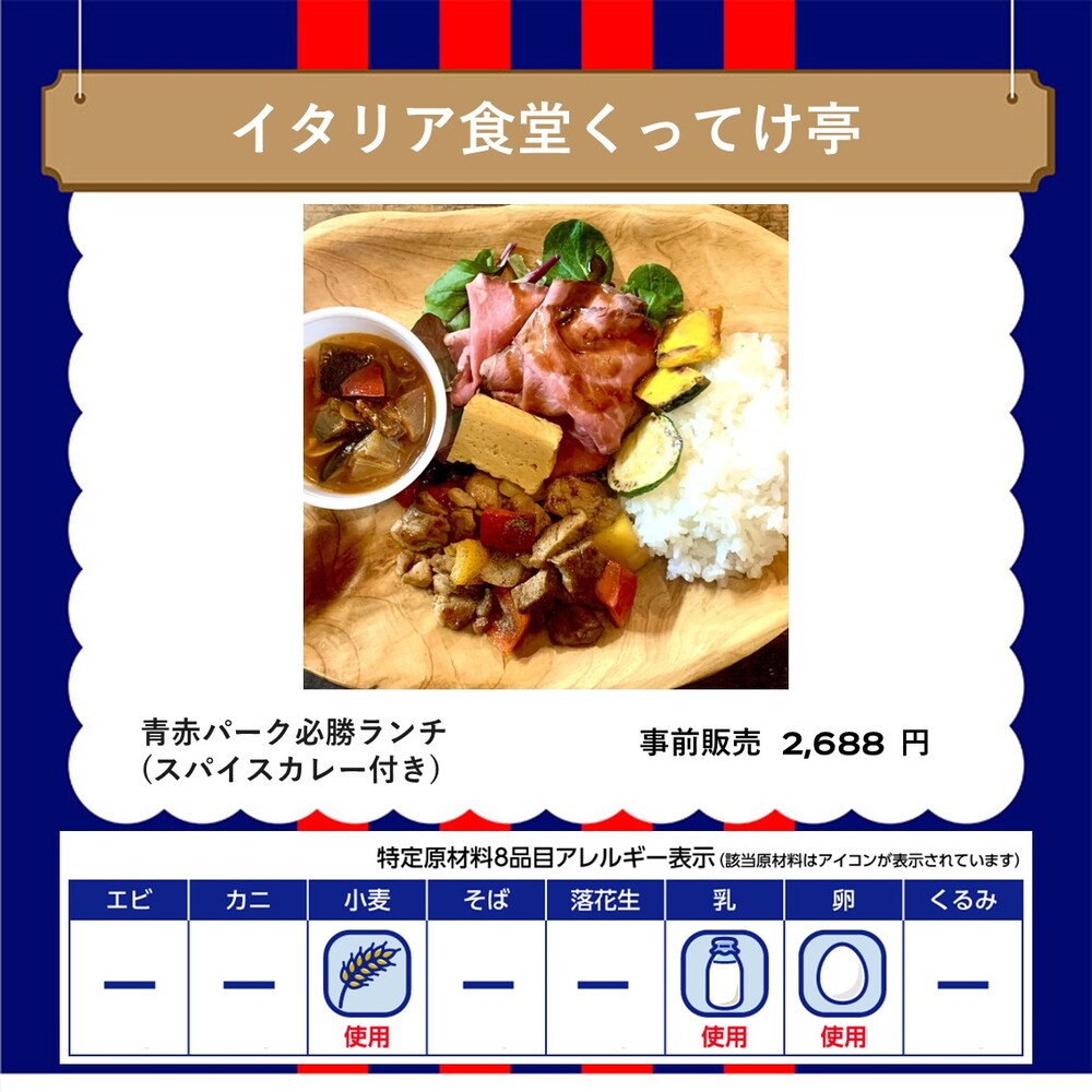 ・一旦确认的订单无法更改或取消。如果在AO-AKA PARK supported by JOYPOLIS营业时间结束前未取货,订单将被废弃处理。