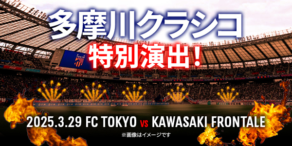 3月29日(周六) 2025明治安田J1联赛 第7轮 vs川崎Frontale (17:00开球/味之素体育馆)将从场地区域使用火焰进行“多摩川经典特别演出”。