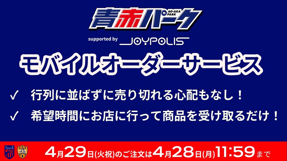4月主场比赛中AO-AKA PARK supported by JOYPOLIS移动点餐服务的通知
