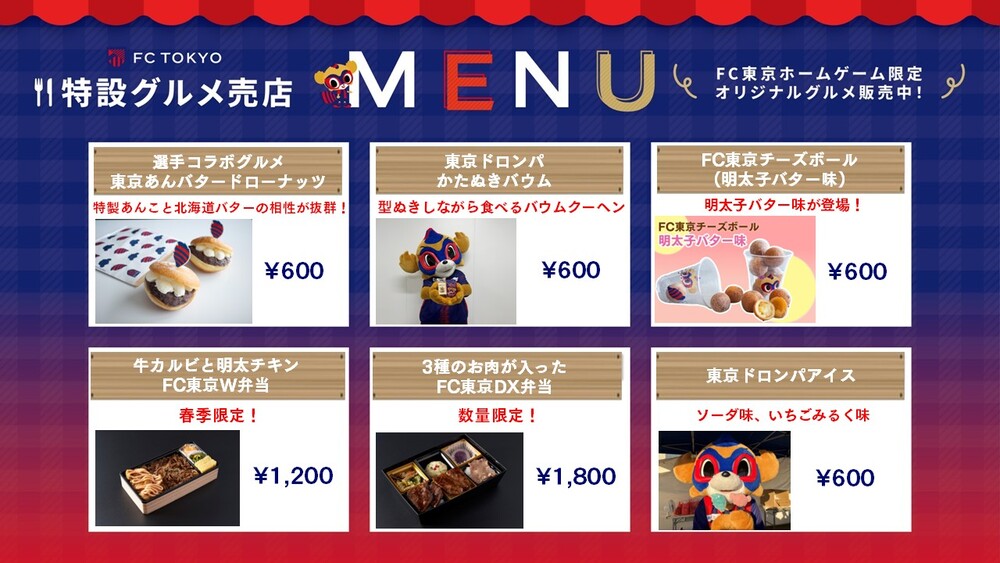 2025年5月10日(周六)明治安田J1联赛 第16轮 Vissel神户(15:00开球/味之素体育馆)的FC东京特别美食摊位信息通知。