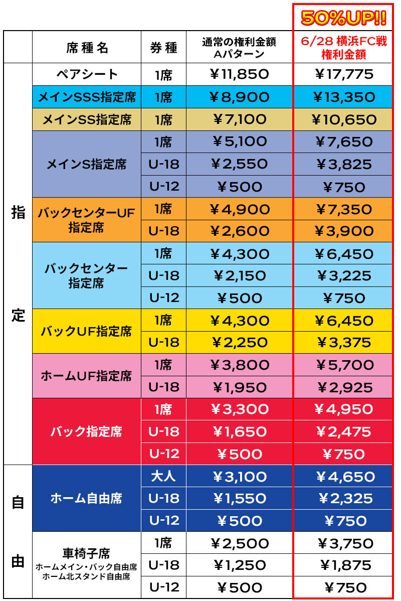 通常,权利金额是以每场比赛的“会员价格”设定的,但在6月28日(周六) 横滨FC比赛中,该权利金额将上涨50%!