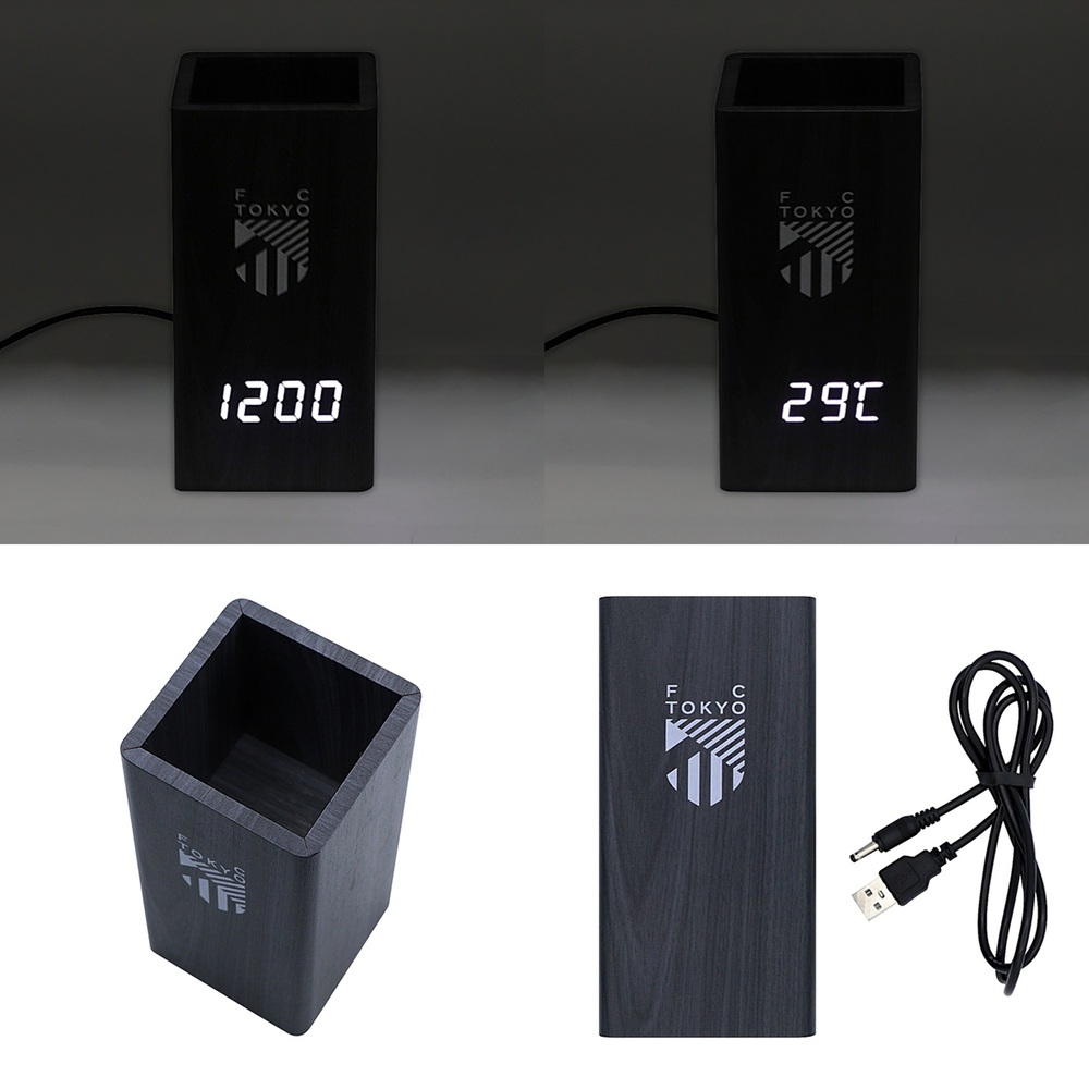 这是一款时尚的木制LED时钟,集笔筒和数字时钟于一体的实用物品。可以在整理桌面文具的同时管理时间,非常适合办公室或家庭使用。