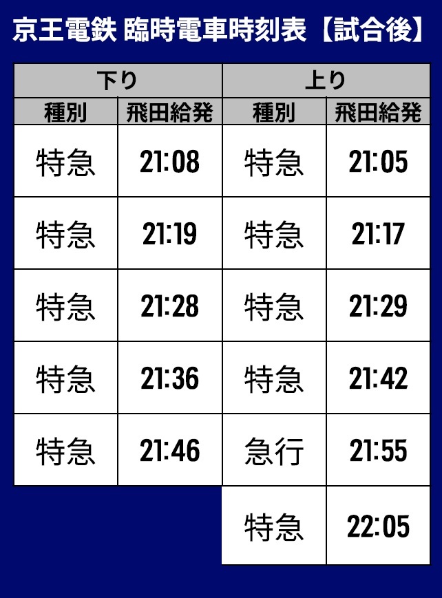 6月14日(周六) 2025明治安田J1联赛 第20轮 vs Cerezo大阪(19:00开球/味之素体育馆)期间运营的临时交通接驳(铁路)、穿梭巴士及线路巴士相关信息。