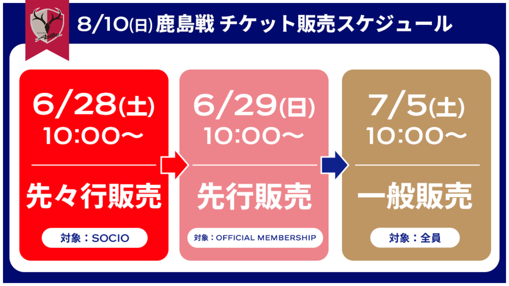 8/10(周日)鹿岛战 门票销售相关