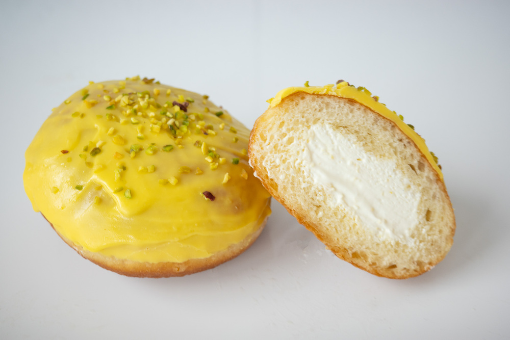 本节是夏天完美的柠檬口味!涂层使用了濑户内产柠檬的果皮和果汁,以及西西里产的开心果。内部的奶油以鲜奶油和白巧克力为基础,结合了濑户内产柠檬,制成了清爽的柠檬奶油。