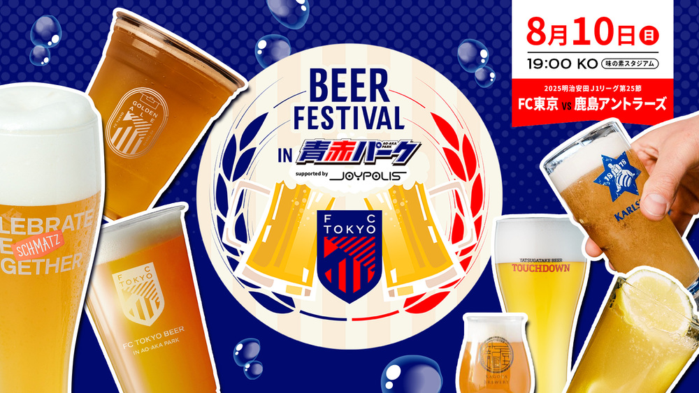8月10日(周日)2025明治安田J1联赛 第25轮 鹿岛Antlers战(19:00开球/味之素体育馆)的,AO-AKA PARK supported by JOYPOLIS (场外)、出差!! AO-AKA PARK supported by JOYPOLIS、体育馆内走廊(场内)售货亭的饮食信息通知。