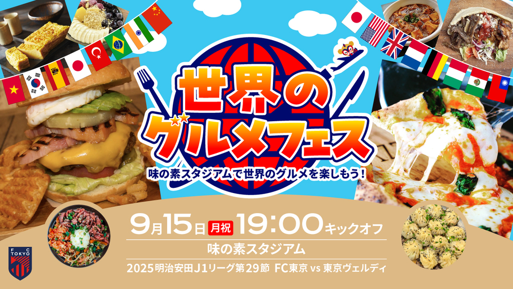 9月15日(周一祝) 2025明治安田J1联赛 第29轮 vs Verdy(19:00开球/味之素体育馆)的,AO-AKA PARK supported by JOYPOLIS(场外)、出差!!AO-AKA PARK supported by JOYPOLIS、体育馆内走廊(场内)售货亭的饮食信息通知。