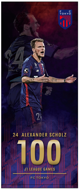 8月24日(周日)2025明治安田J1联赛 vs京都SANGA F.C.中,Alexander SCHOLZ选手达成了J1联赛累计出场100场的成就。为纪念此事,将接受预订销售SCHOLZ选手J1联赛累计出场100场纪念商品,敬请购买。