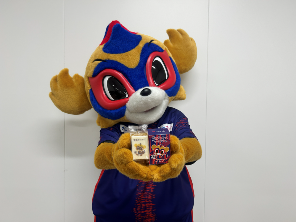 这是一款限量商品,采用无添加自然熟成的传统葛饼,切割成球队吉祥物TOKYO DOROMPA的脸型!
