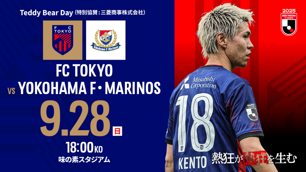 2025年9月28日(周日) 2025明治安田J1联赛 第32轮 vs横滨FMarinos(18:00开球/味之素体育馆)中,确定从下赛季起升入顶级队伍的FC东京U-18所属的Divine OTANI选手、菅原悠太选手、铃木枫选手、田中希和选手将在赛前向球迷和支持者们致意。