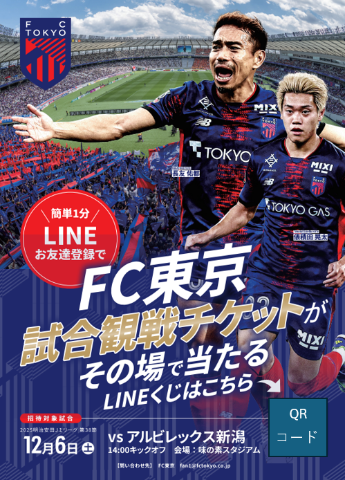 12月6日(周六)Albirex新潟战的门票抽奖LINE传单将在展位周边发放。