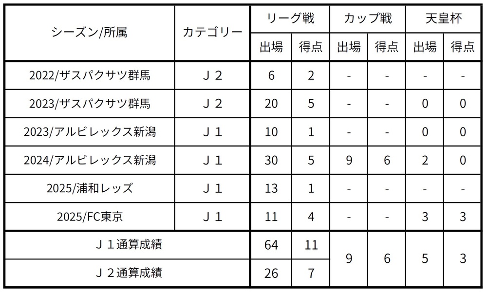 □出场记录(截至2025赛季结束/仅限J联赛所属时)