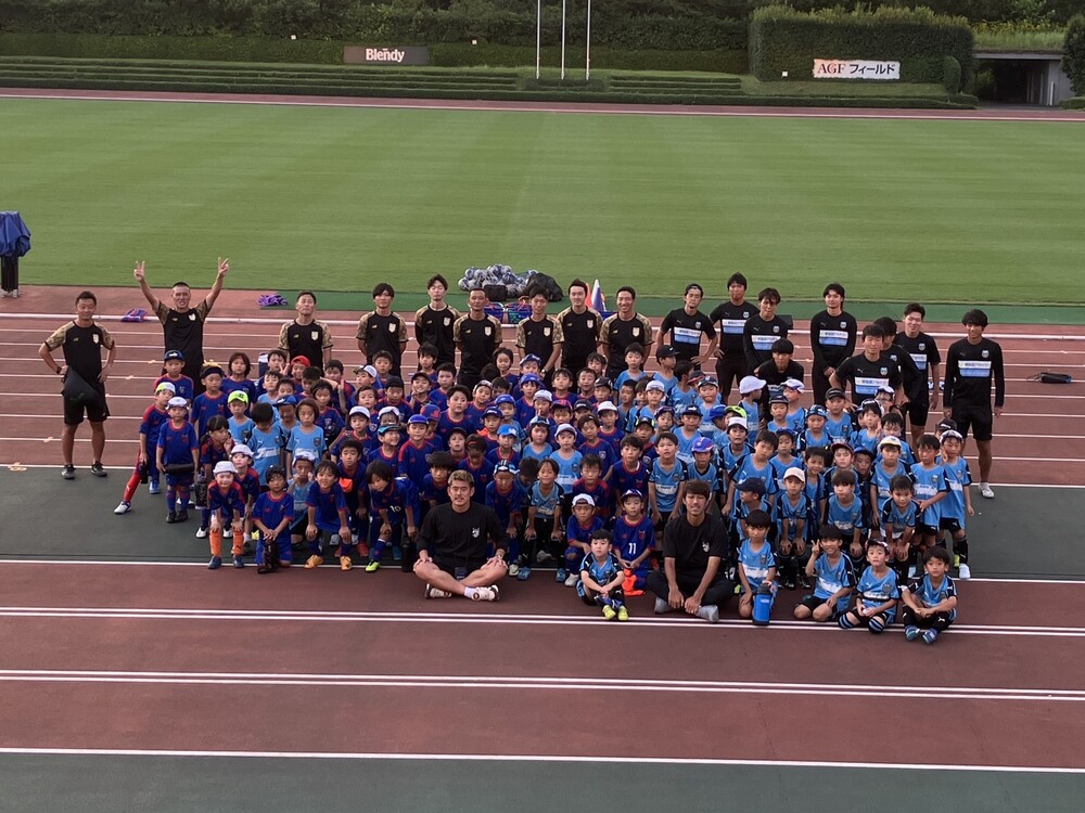 【小学一年级学生对象】学校交流赛(对阵川崎Frontale) 2024/8/26 学校报告 2024年8月11日(周日),在味之素体育馆旁的“AGF场地”举行 与川崎Frontale的学校学生进行了学校交流赛! 这次的活动面向小学一年级学生! 虽然是在炎热的天气下进行的,但两所学校的学生都进了很多球 我们进行了大量的交流♪ 闭幕式上,竟然有惊喜…… FC东京 一线队的 “ 儿玉刚 选手 ” 和 “ 木本恭生 选手 ” 登场!!! 已向两所学校的学生发送了鼓励的评论。 ▽ 与顶级球队球员合影留念 ▽