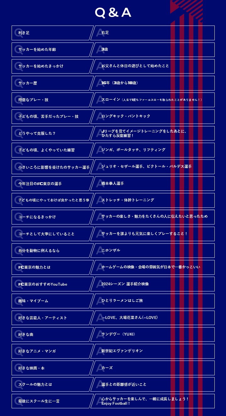 【普及部教练】2025赛季新加入教练介绍 / 井ノ上虎生教练 2025/4/6 学校报告 FC东京足球·室内足球学校在2025年新增了8名教练,现予以介绍♪ 如果在学校或活动中见面,请多多打招呼! 第6人是……井上虎生 教练 【姓名】 井ノ上 虎生(いのうえ こお) 【昵称】 教练Koo 【出生地】 东京都丰岛区 【经历】 指导经历 / 专门学校等 如果有任何疑问,请务必向教练咨询哦 ♪