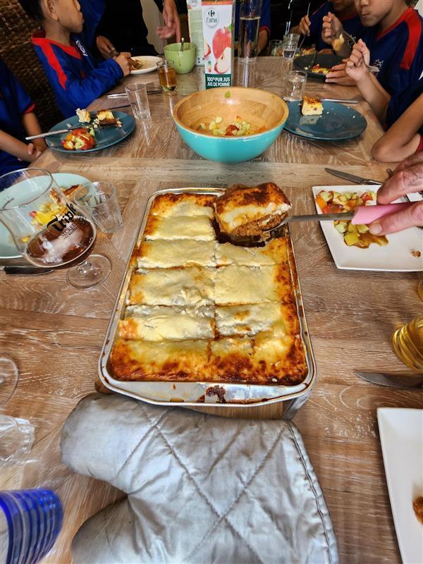 晚餐准备了培根蛋挞、沙拉、千层面和酸奶,大家一起美味享用!