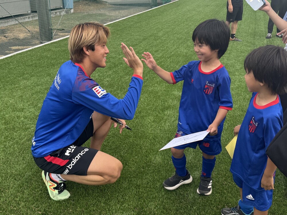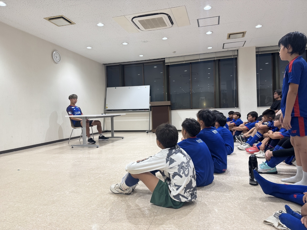 西堂久俊选手向学校的学生们传达了这样一条信息:“多多练习,多多踢球,足球技术就会提高,所以今后也请继续多多练习!”