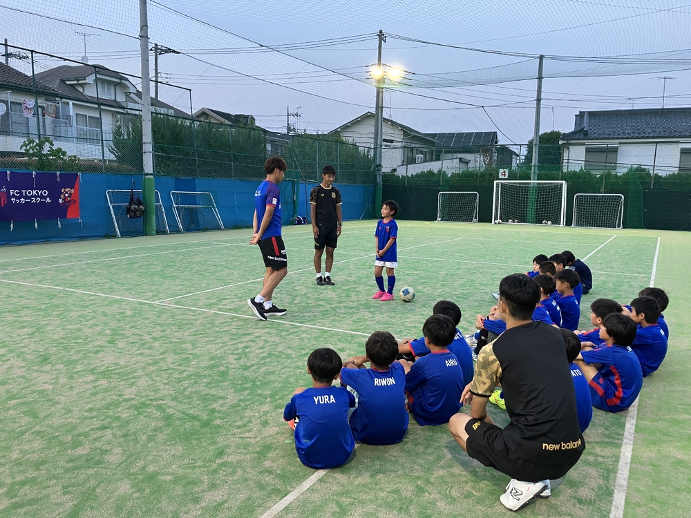 对于学员提出的“如何踢出有力的射门”的问题,我传达了“稳固支撑轴足和大幅度张开双手是很重要的”。