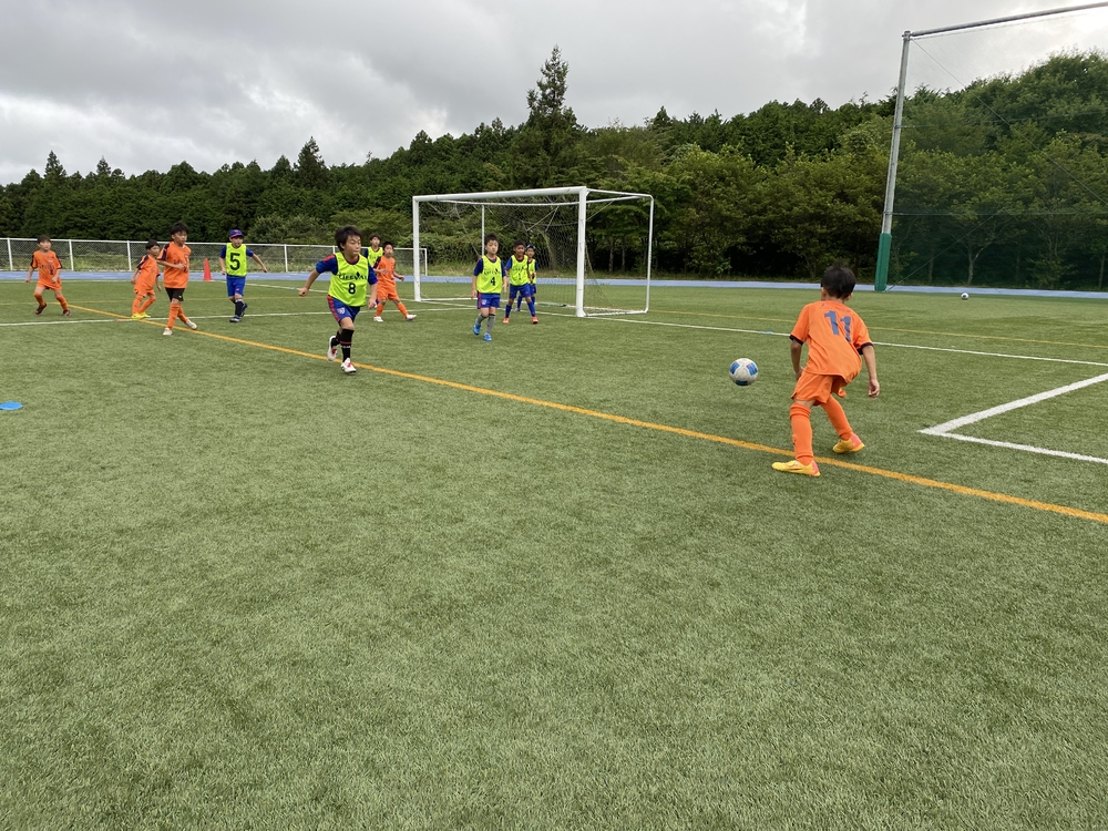 【第2天活动报告:下午】夏令营第一弹 2025/7/27 学校报告 ~ 夏令营第一弹 <第二天下午> ~ 终于与清水S-Pulse的交流赛! 站在球场上的孩子们虽然表情中带有紧张,但怀着“绝对想赢!”的强烈心情开始了比赛。哨声一响,他们齐刷刷地奔跑起来,追逐球的身影正是全力以赴的表现。 充满速度感的盘带,与队友默契配合的传球,拼尽全力的防守……。在你来我往的攻防中,欢呼声也变得热烈,每当进球时,都会响起巨大的欢呼声! 我想为那些坚持到底,全力奔跑的孩子们送上热烈的掌声。