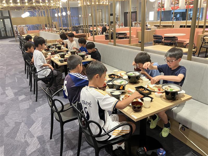 到达后,吃了午饭,与将在本次比赛中成为同一队的队友们进行了交流,并决定了制服的背号等事项。