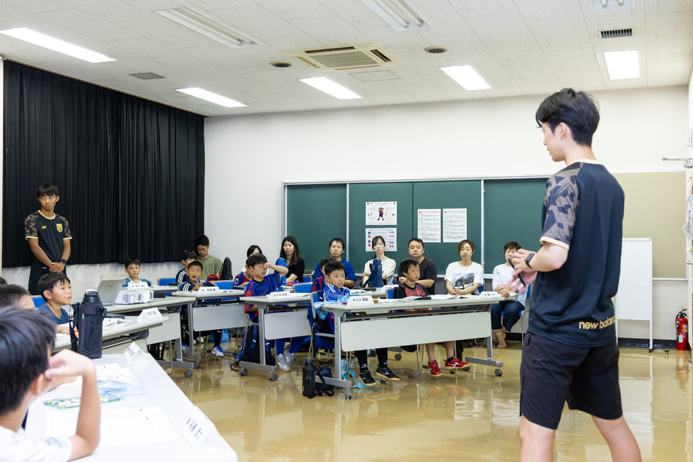 训练结束后,我们一边查看手册,一边回顾“距离目标有多近”和“努力了哪些方面”。最后还有桥本拳人选手的惊喜视频留言!现场响起了热烈的欢呼声,大家带着笑容圆满结束了此次训练营♪