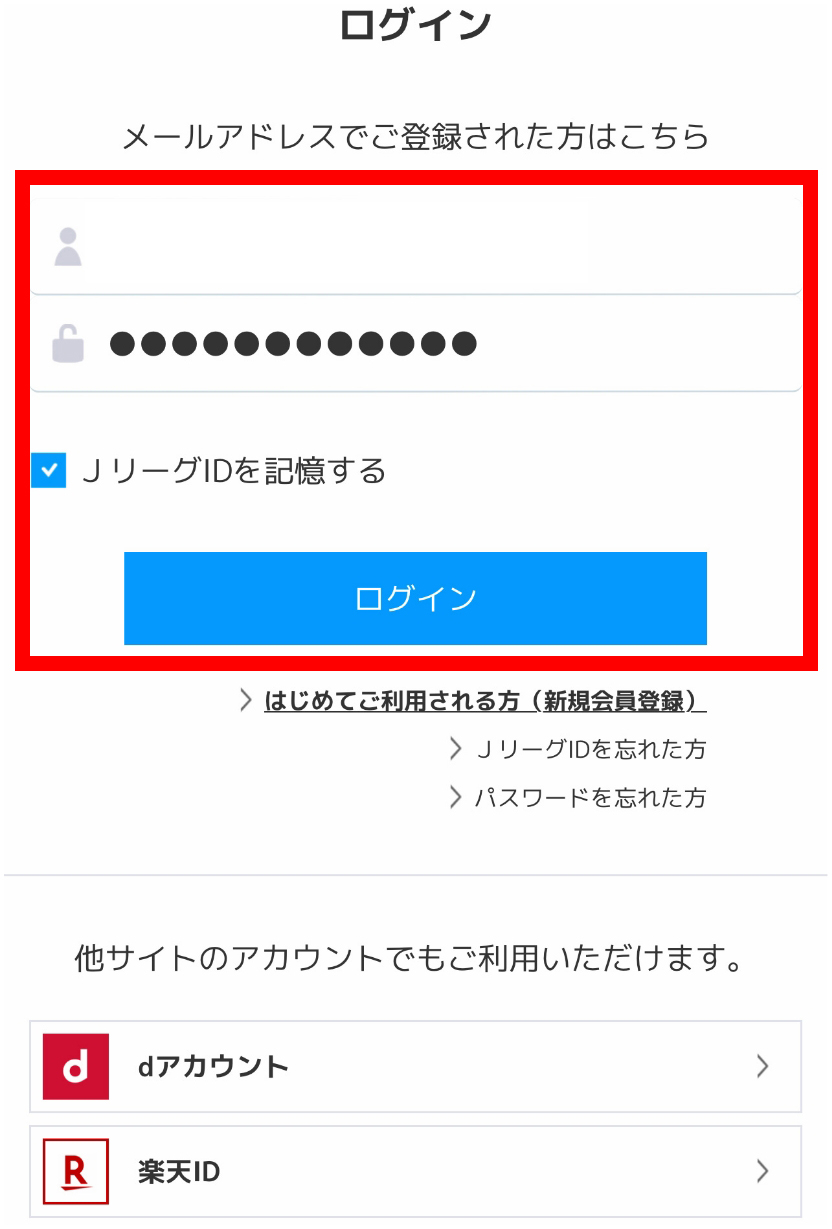 請輸入J聯盟ID註冊時的電子郵件地址和密碼以登入