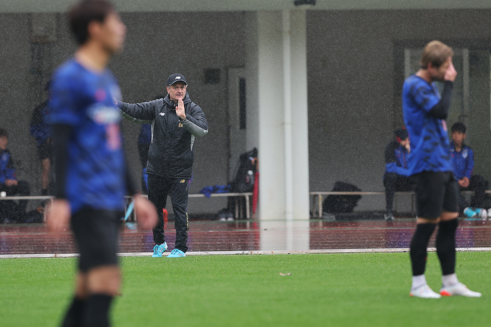 A、我認為表現出了很好的足球。不過因為場地狀況的關係,要發揮期待中的表現是困難的情況。不過,即使在這樣困難的情況下嘗試連接傳球這點我認為是很好的訓練。整體來說,今天的實戰形式訓練也是非常出色的訓練。
