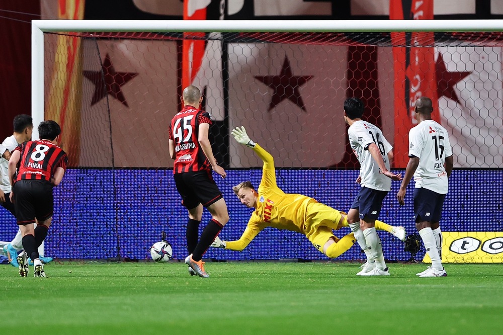 下半場34分鐘時,透過定位球出現了危機。左側的角球被頭球攻門,但Jakub SLOWIK選手成功撲救,隨後對方再次推射散落球,Jakub SLOWIK選手重新調整姿勢反應,在門線邊緣做出精彩撲救。下半場40分鐘時,紺野選手作為起點,安部柊斗選手從右側突破,送出快速的傳中球到禁區前,但稍稍未能接應。下半場42分鐘時,Adailton選手從左側傳中給進入禁區的Diego OLIVEIRA選手,但Diego選手的頭球射門稍稍偏向門柱右側。下半場44分鐘時,Adailton選手帶球深入禁區左側空間,吸引守門員出來後傳出最後一腳,飛撲而來的松木玖生選手嘗試滑鏟接球,但稍稍未能碰到球。