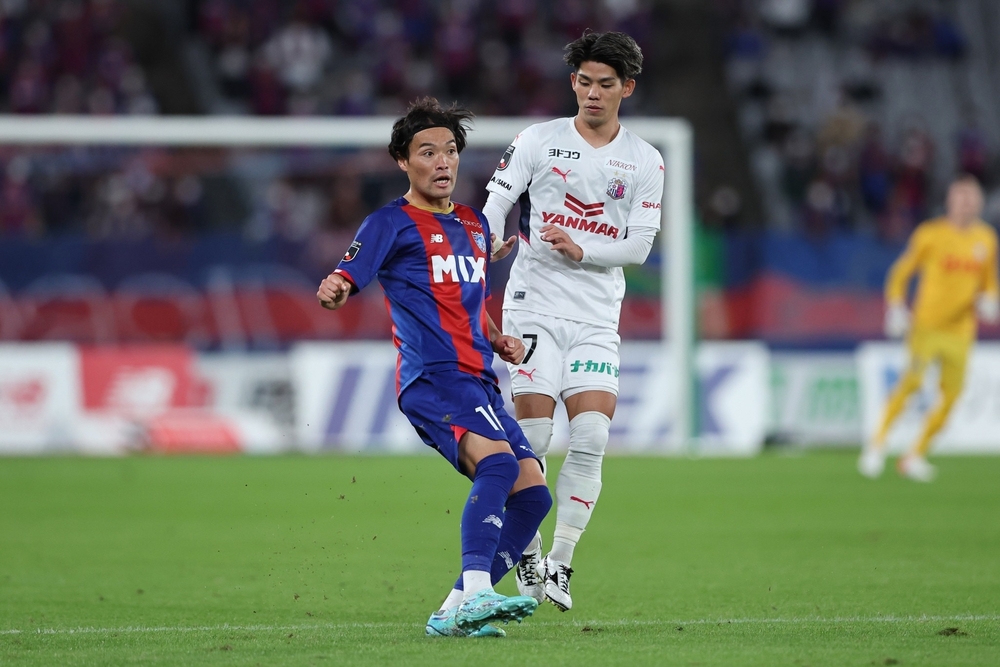 開場雙方都創造將球帶入禁區的場面。最先創造決定機的是C大阪。在東京防守陣線後撤應對時,被送出楔形傳球到後衛間隙,左側背後空間被利用。當防守球員逼近突破的選手時,對方傳出遠柱側的橫傳球,但為田選手的射門未能擊中球,偏向球門上方。