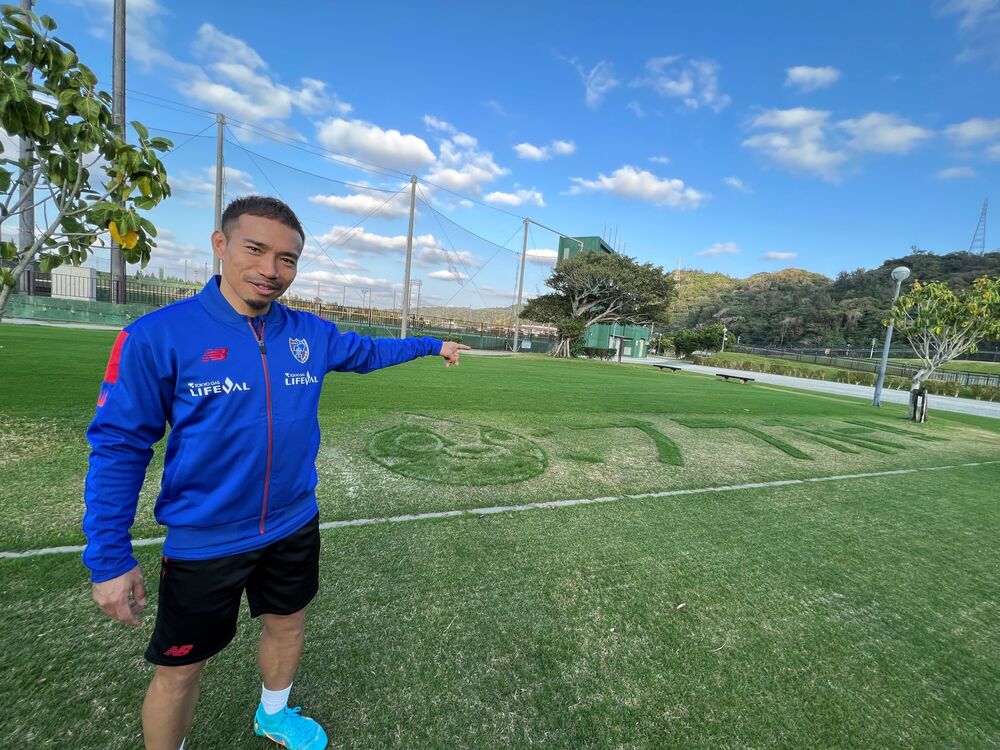 練習結束後,包括長友選手在內的選手們走出場地時,草坪被修剪成了「Bravo!!!」的字樣。非常感謝。