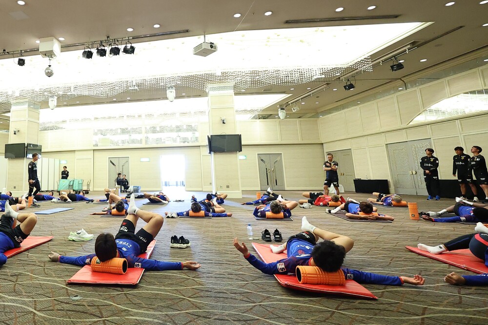 沖繩・糸滿訓練營第二天,在宿舍進行了恢復訓練。選手們透過伸展運動及在宿舍的游泳池放鬆身體,花時間進行身體照護。