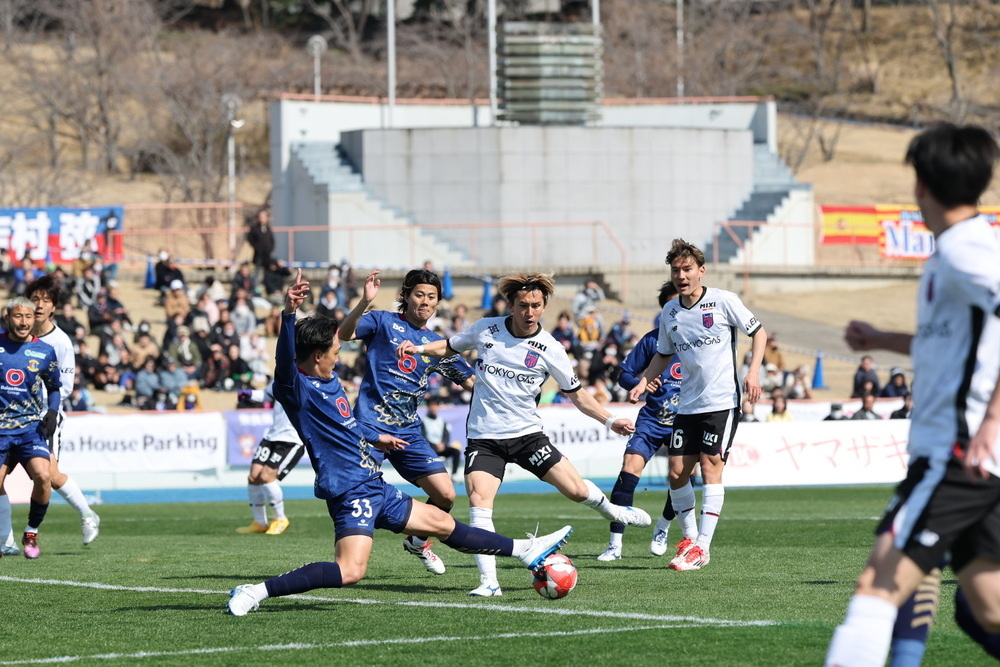 比賽中,東京隊率先創造出決定性機會。上半場第5分鐘,田晃太選手突破左側邊線,送出地面傳中。安齊颯馬選手用左腳迎球射門,但球正中對方守門員正面,被成功阻擋。
