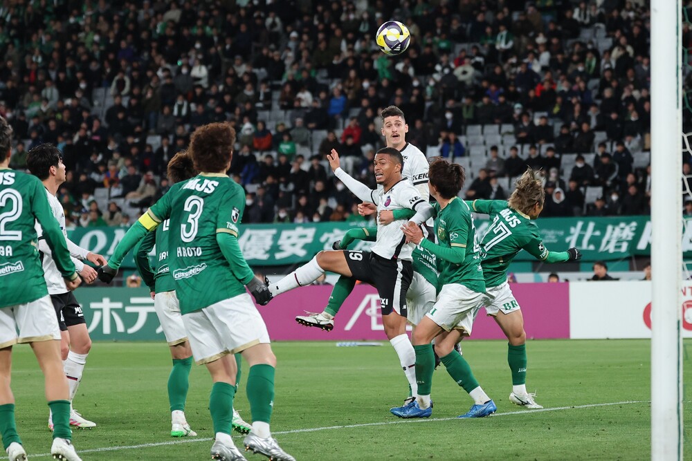 先得分的是東京V。上半場20分鐘時,對方從右側角球製造了近門區的空間,林選手頭球攻門,讓球隊陷入落後。