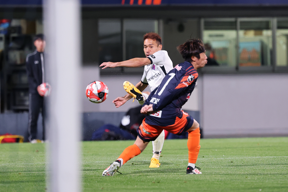 就在顯示1分鐘的補時階段開始後不久。橋本選手在自陣左側細膩地傳球,將球傳向前方。自由突出的Julian選手高速帶球獨跑,從左前方45度角以銳利的右腳射門直擊右側網角,完成帽子戲法。以壓倒性的決定力拉開與大宮的差距,取得2分領先進入延長賽。