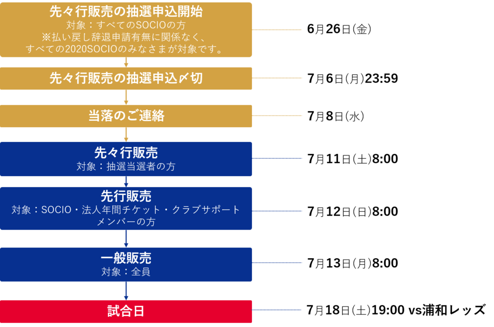 ・SOCIO及法人年度票持有者於先行販售期間內以會員價格購買者的抽籤結果預計於今日17:00發送。今日尚未收到郵件者,請於7月10日(周五)12:00前聯絡SOCIO:socio@fctokyo.co.jp