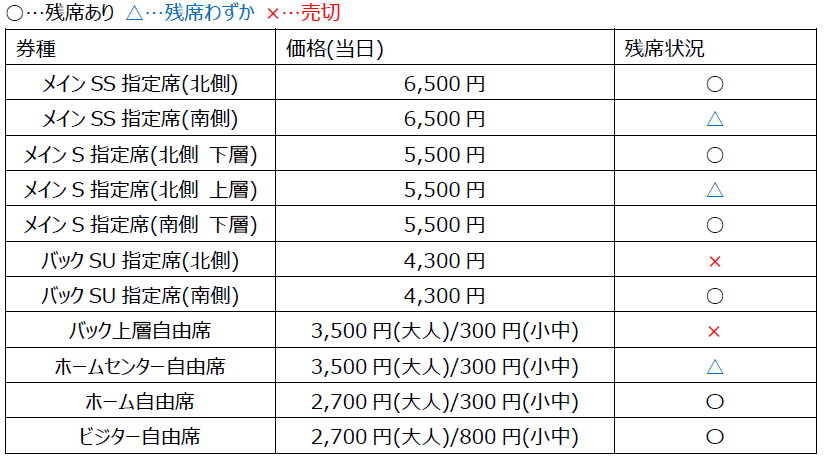 【9/29更新】後方上層自由席已售罄。當日票不再販售。</span>