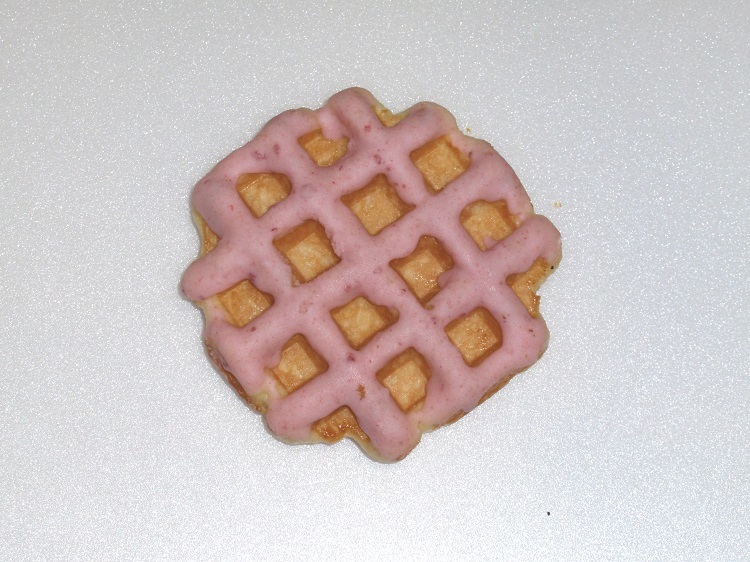 這是硬式鬆餅外層塗覆草莓巧克力,充滿季節感的西式點心。