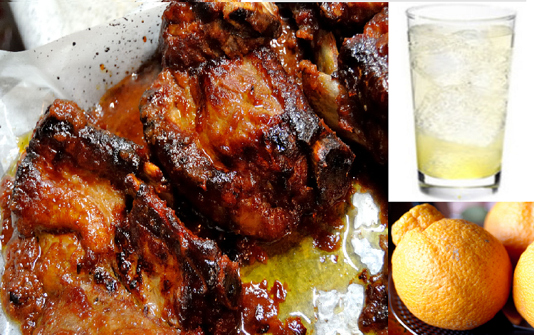 正值當季的柑橘風味沙瓦與豬肋排的組合。非常搭配喔!