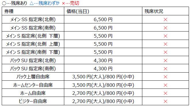 由於預售階段主場自由席已售罄,比賽當日場外(主看台・後看台)將不接受俱樂部支持會員入會申請(新會員・續會・追加口數)。